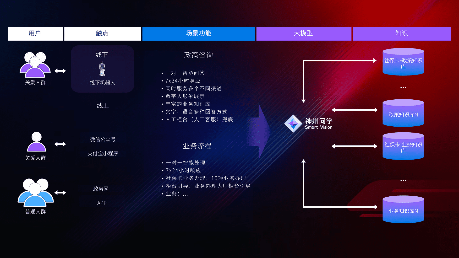 • 线上线下全覆盖:线上提供微信公众号、、支付宝小程序、、政务网、、、app多种渠道,,与线下机器人形成完整服务体系。。