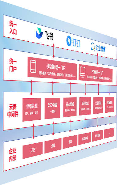 对协作平台提供支持服务,,,支持企业应用与协作平台对接,,,包含组织同步、、消息集成、、、、待办集成等。。支持目前主流的协作平台:钉钉、、、、企微和飞书。。