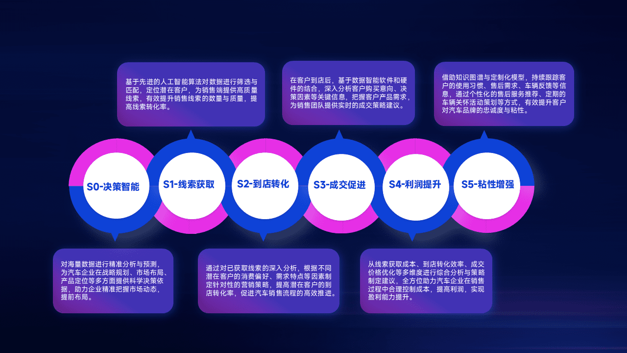 通过拓宽潜在客户来源、、优化线索分配并提高到店转化率,,以增强销售效率。。。。同时,,,利用线索数据不断优化分析模型,,,,有效提升转化率,,,扩大营销影响力。。。
